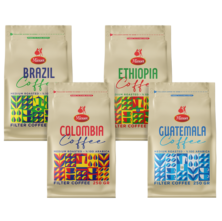 Brezilya, Etiyopya, Kolombiya ve Guatemala’nın verimli topraklarından yüksek kaliteli Arabika çekirdekleri seçilerek sizin için hazırlandı.